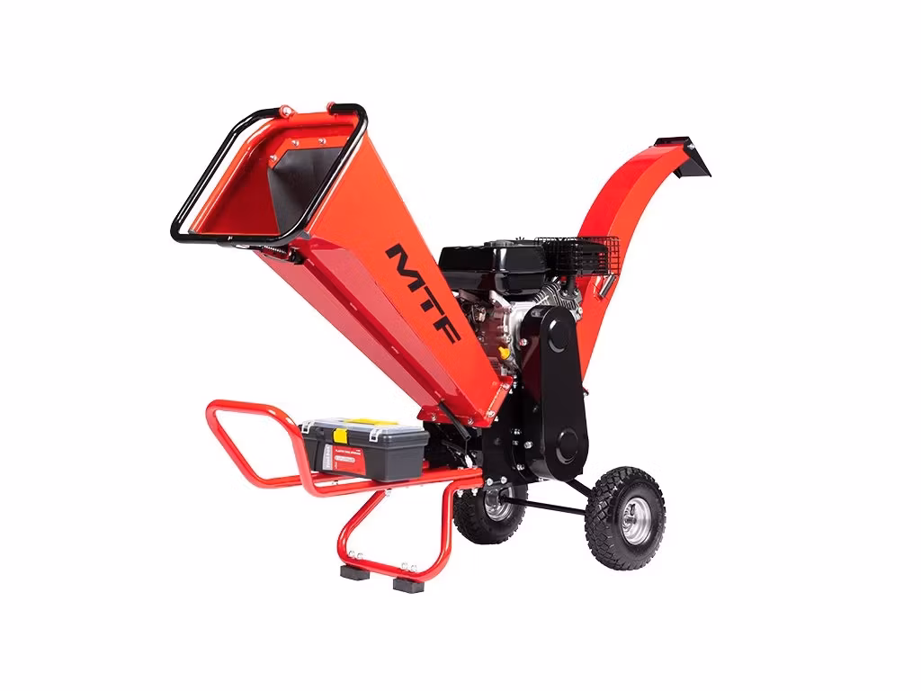 En kraftfull bensindriven flismaskin som lämpar sig för större trädgårdar och platser utan elanslutning.
