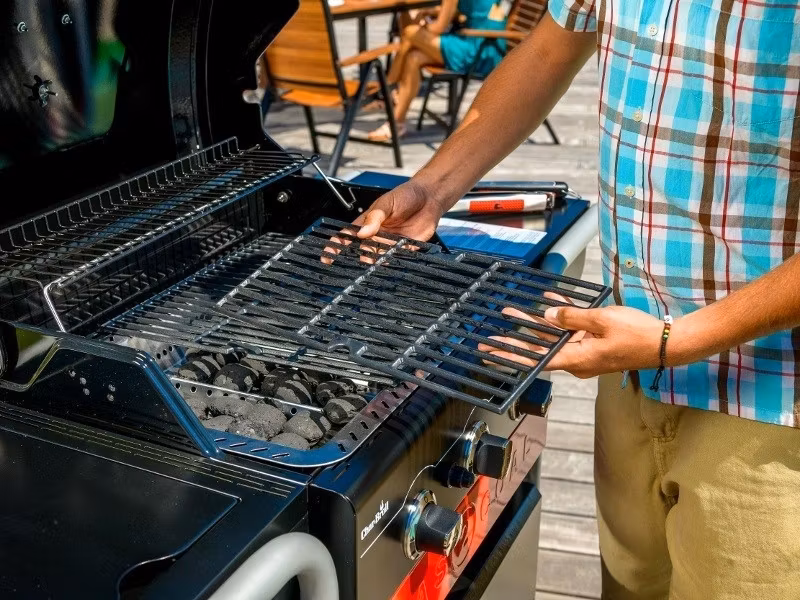 Autentisk kol-smak – tänd kolen med gasbrännarna, utan tändvätska, för enklare och renare grillning.
