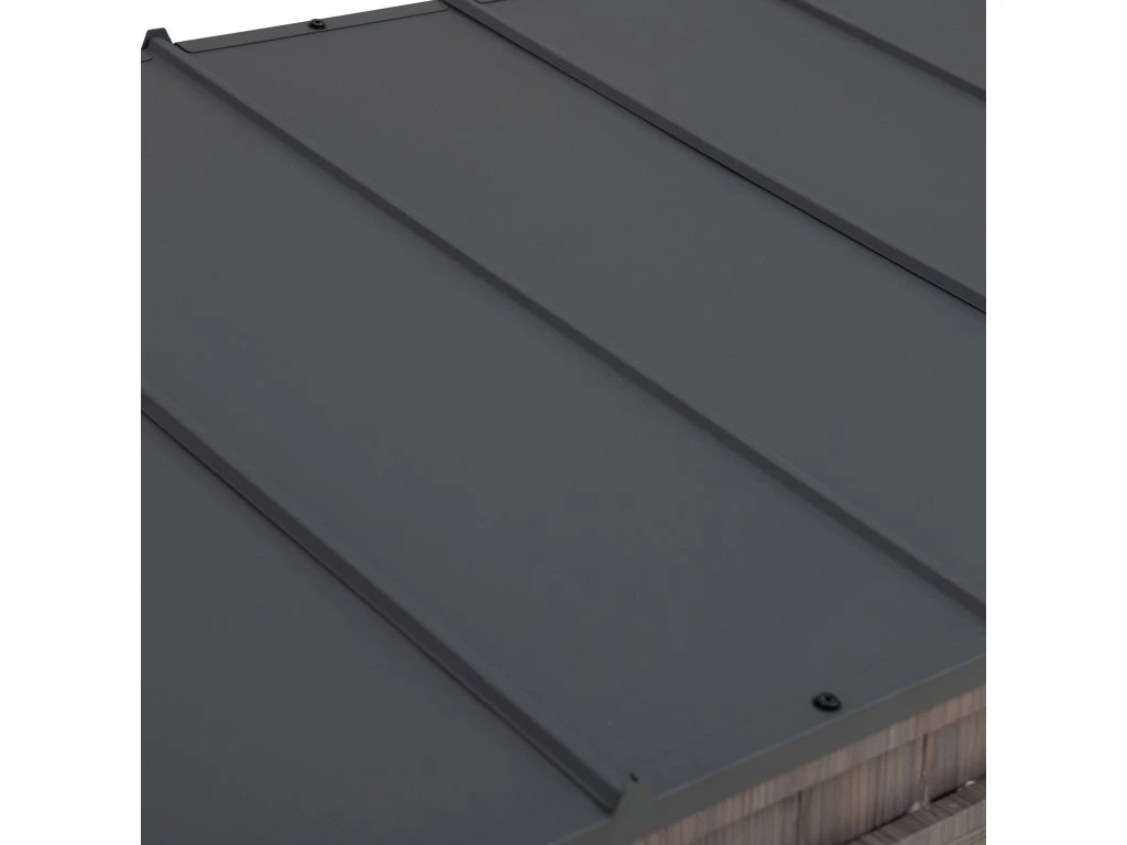 Den pulverlackerade stålkonstruktionen kombineras med rostfria detaljer i 304-kvalitet, vilket ger hög motståndskraft mot korrosion och lång livslängd – även i nordiskt klimat.